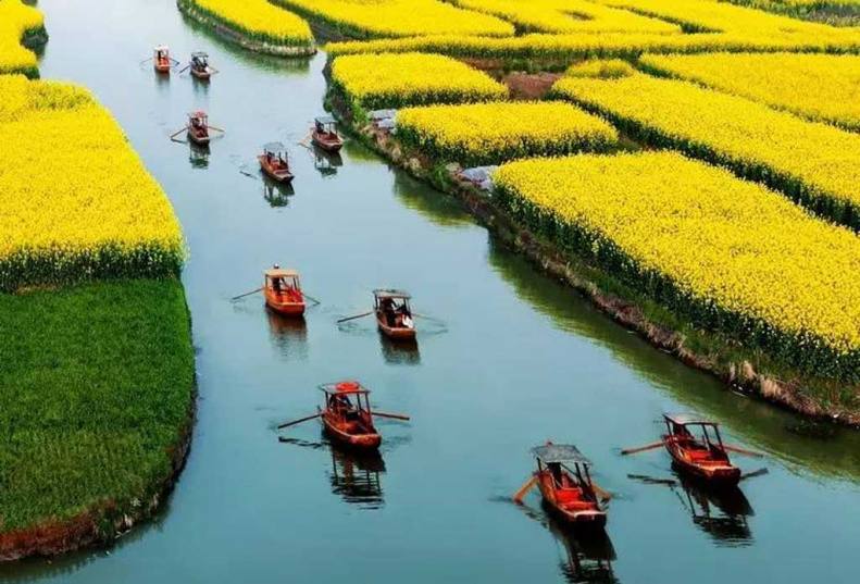 放眼垛田,河港纵横,块块隔垛宛如漂浮于水面岛屿,有“万岛之国”的美誉。每当清明前后,油菜花开,蓝天、碧水、“金岛”织就了“河有万湾多碧水,田无一垛不黄花”的奇丽画面,所以号称“世界最美油菜花海”。