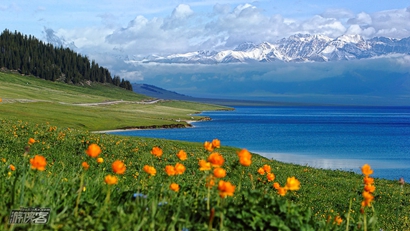赛里木湖:5月的赛里木湖依然可以看到冰推奇观,雪山环绕着湛蓝的湖泊,湖边草原绿意盎然,适合进行环湖游