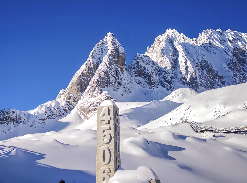 【玉龙雪山风景区】,乘玉龙雪山大索道(玉龙雪山索道如遇旺季限票或天气原因导致上不了,我们将调整为玉龙雪山索道换成云杉坪索道处理,差价现退)从海拔3000米的草甸出发,穿越高大挺拔的各种松林杉树,到达4506米高的雪山冰川,站在观景台观看玉龙雪山“日照金山”奇观,欣赏大自然恩赐的美景,下午游【白水河,蓝月谷】(PS:景点前后顺序会根据当天实际情况以导游安排为准,玉龙雪山冰川公园大索道严卡时间安排,需提前订票,一旦锁定时间无法更改和退还,还请各位游客朋友配合游览安排时间。另由于不可抗因素或淡旺季索道配额等情况无法正常游览冰川公园大索道,我们会根据当天实际情况做备选方案调整改走小索道云杉坪或中索道牦牛坪,并根据实际情况退大索道差价)。
