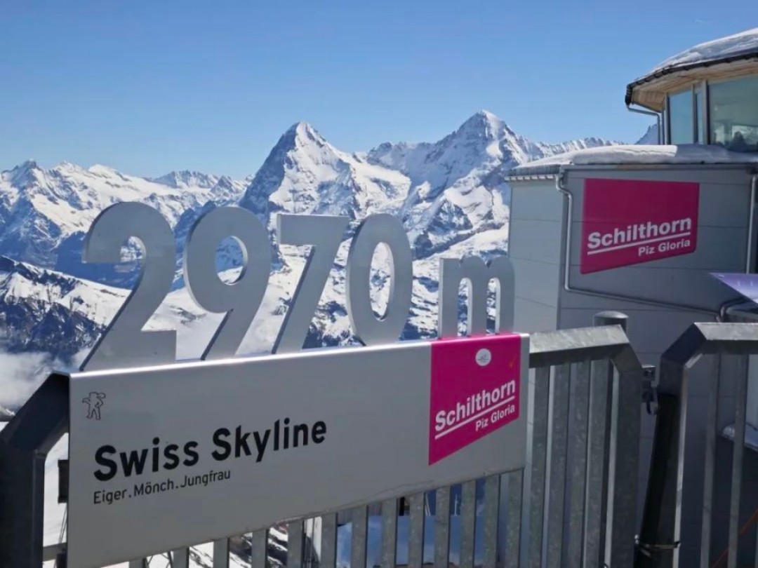 12:00 抵达瑞士,游览阿尔卑斯山--【雪朗峰】(缆车上下,约2.5小时),其因007系列影片之一《女王密令》中惊心动魄的打斗场面在此拍摄而闻名于世。抵达山顶后亲临勇敢者观景台,沉浸在漫步云端置身云海的超然感受。在这里,您还可以选择在观景台上欣赏到由艾格峰、僧侣峰、少女峰群山环绕下的壮丽景色。您还可以进入詹姆斯.邦德体验馆,观看多视角雪朗峰地区风光片包括詹姆斯.邦德系列影片“女王陛下的秘密使命”的精彩片段。(如遇检修,改去其他阿尔卑斯山峰,行程会依据实际情况调整)