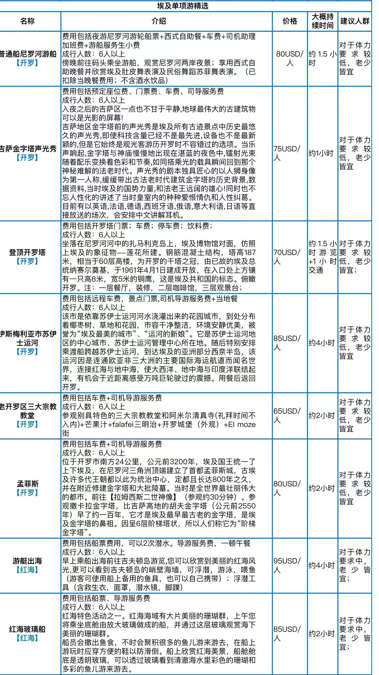 4.旺季出发(例如遇复活节、开斋节等)将有附加费,请报名时查询。