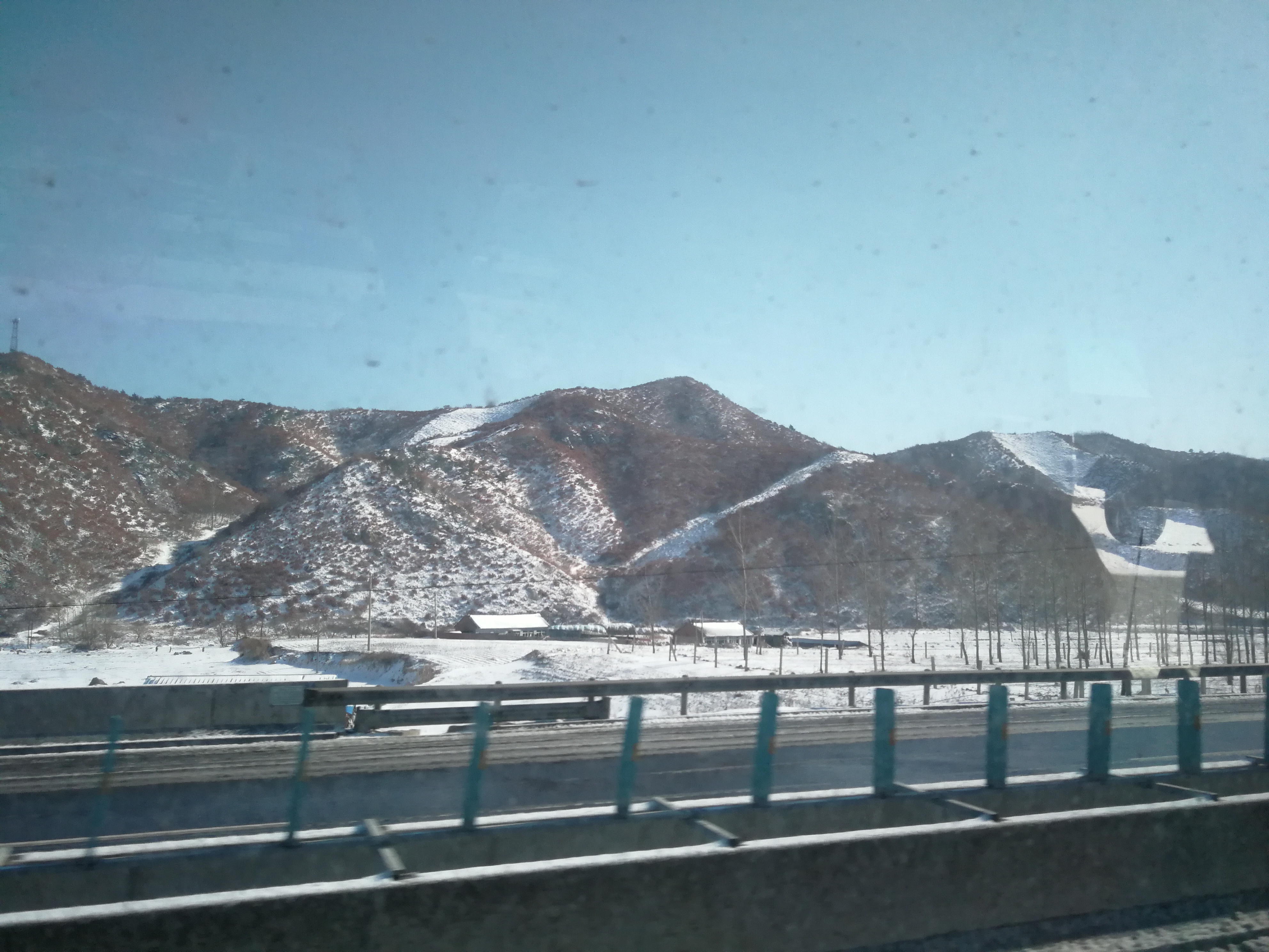路程过半,窗外风景吸引了我们,因为昨天刚刚下过雪,路边的山坡,树木,村庄被白雪覆盖,有的地方像玉龙雪山,有的地方像雪村,我随手拍的这张,似乎看到了毛泽东笔下“山舞银蛇,原驰蜡象”的壮观景色!