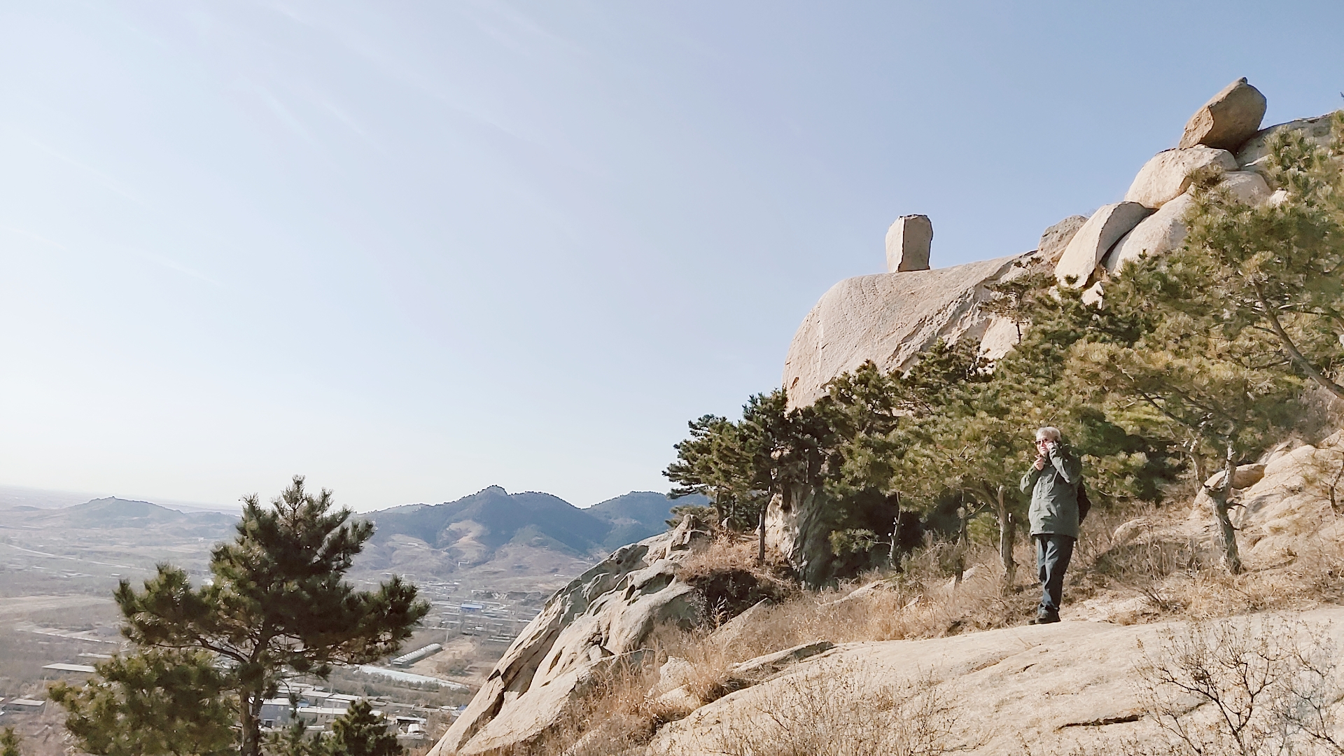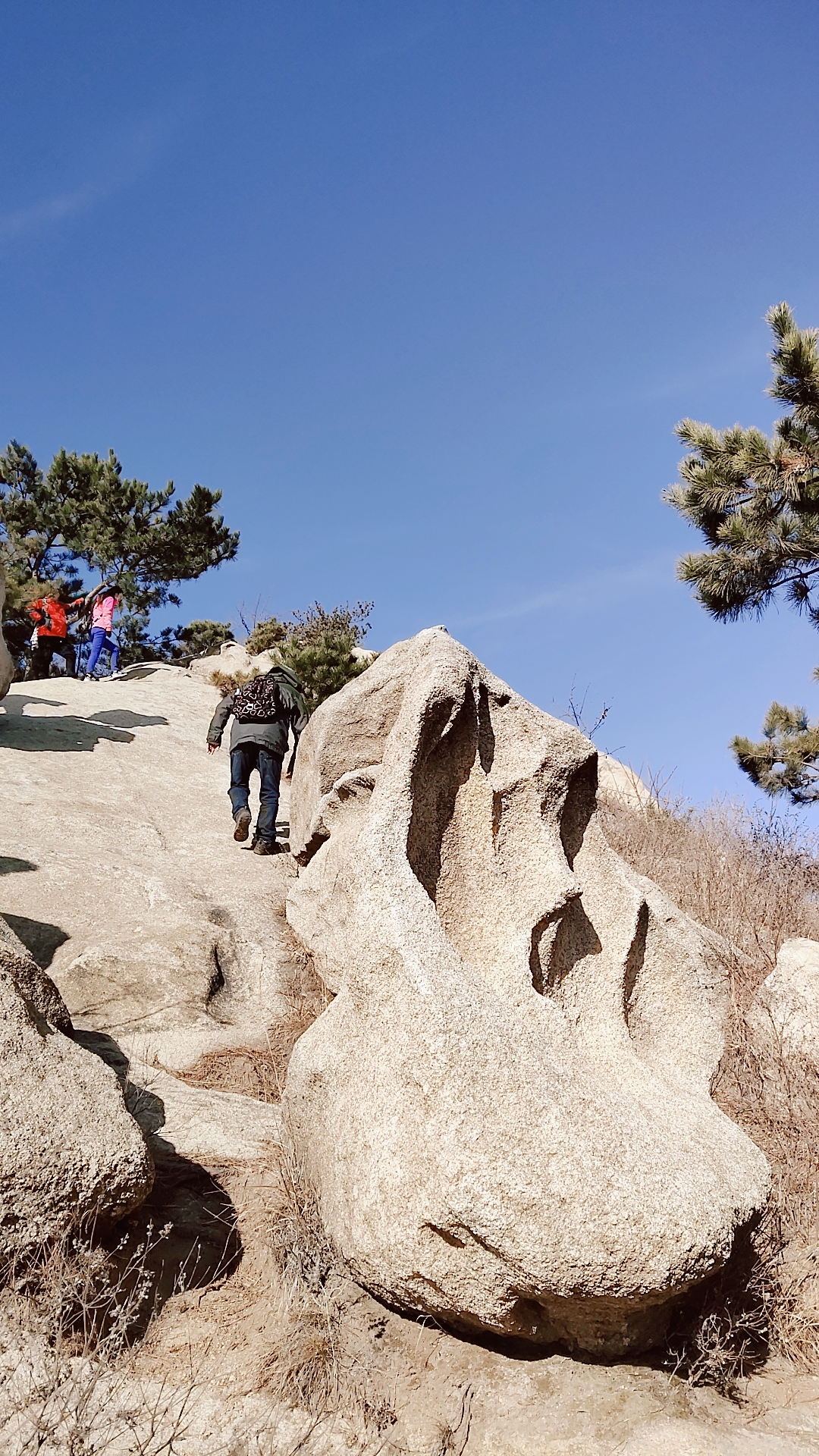 山上虽没有五颜六色的花草,但也没有什么凄凉的感觉,一路上怪石嶙峋,松石林立,空气清新,山顶之巅,放眼四望,令人心旷神怡。